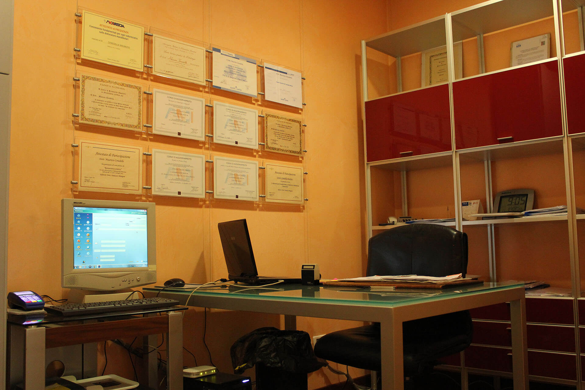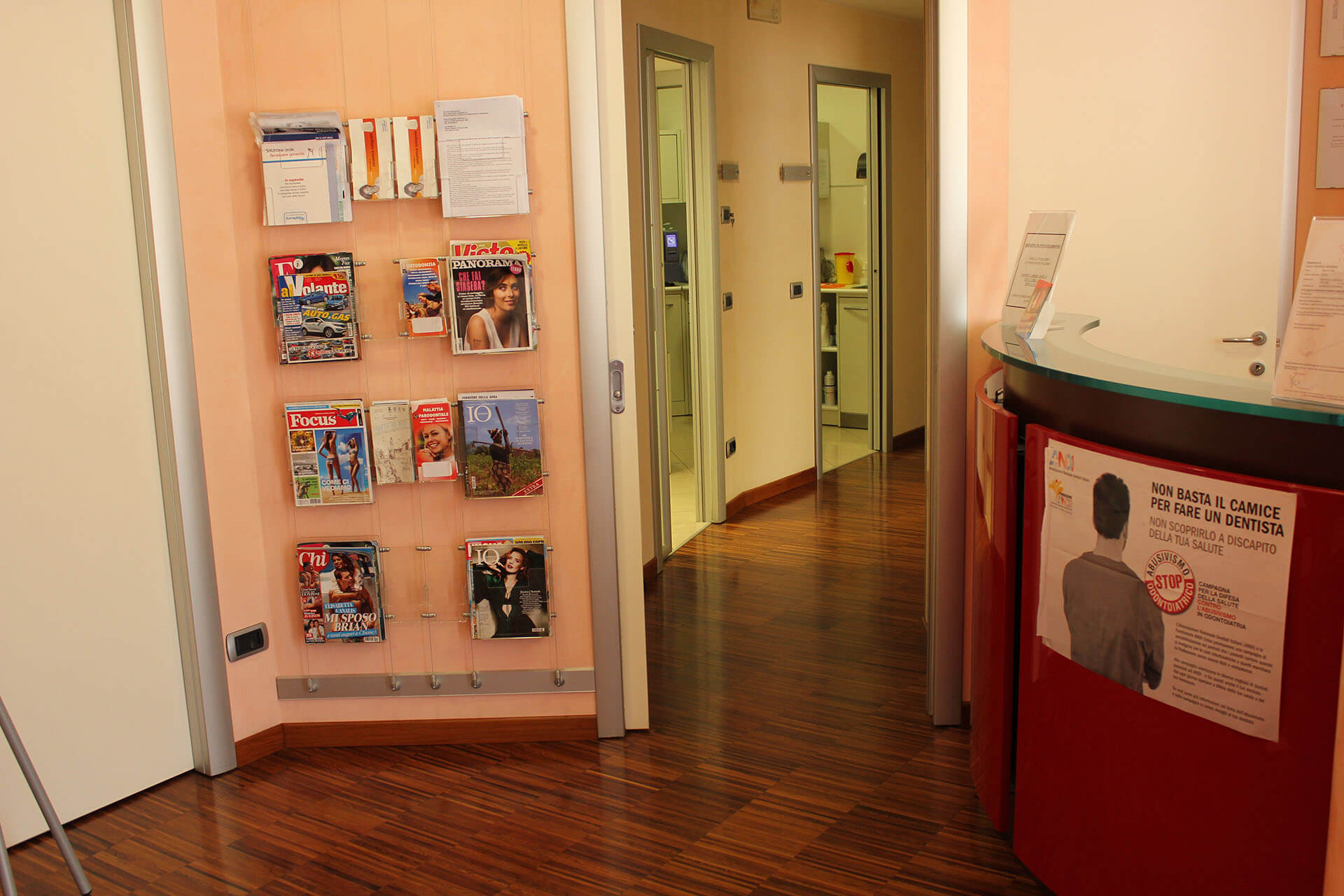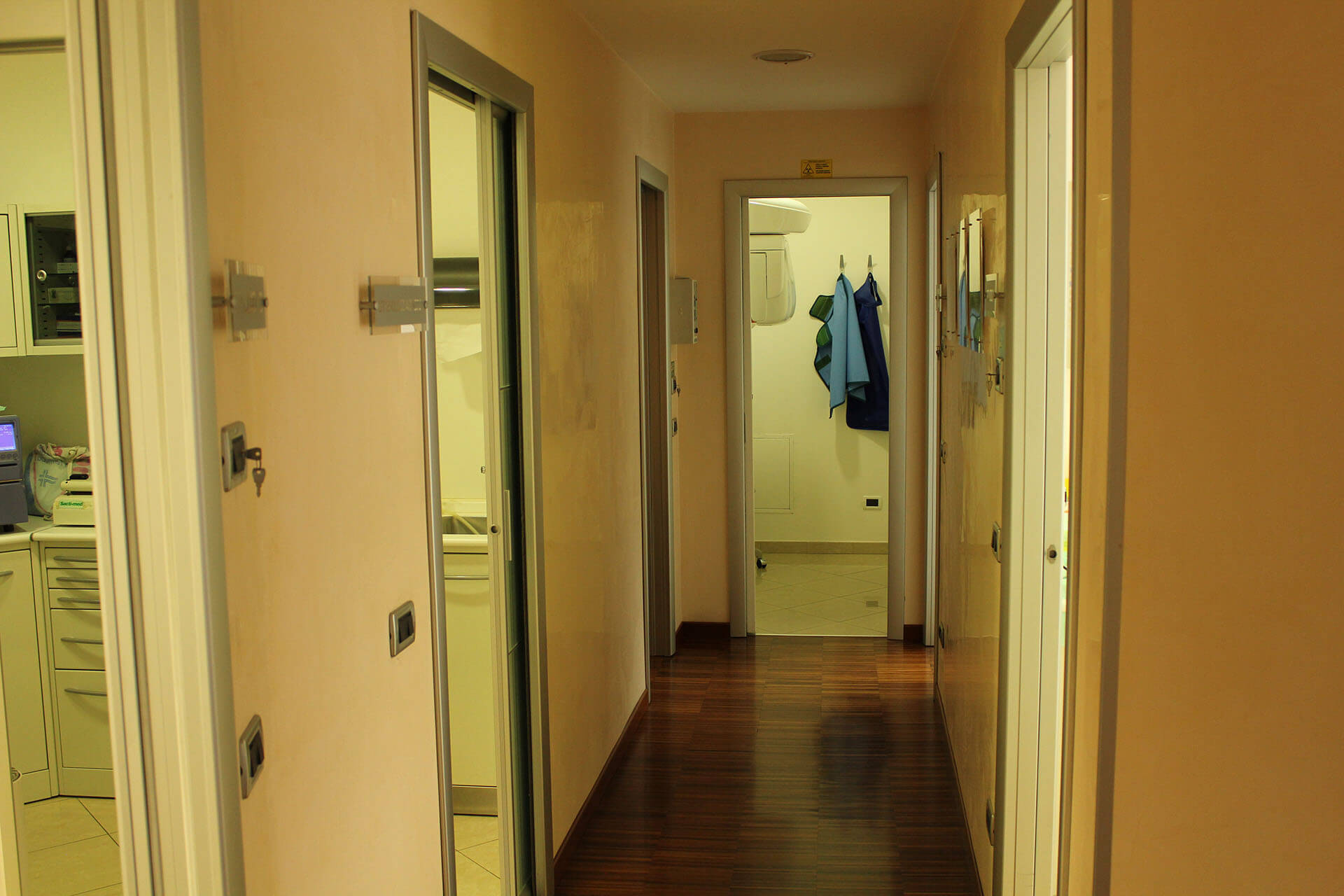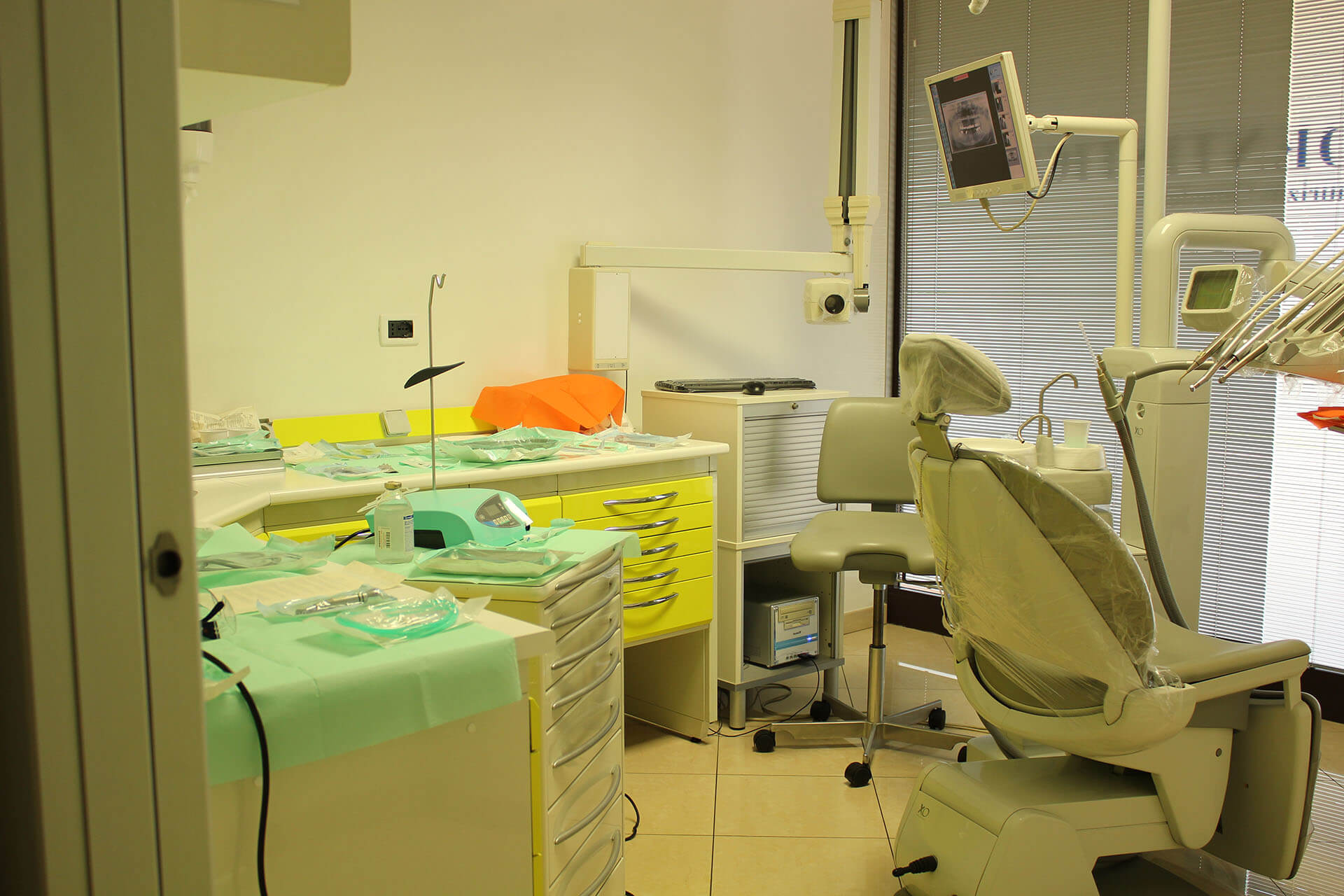Lo studio presenta un’ampia sala d’attesa con sevizi igienici, tre sale operative, una stanza adibita a segreteria, una sala di sterilizzazione che include una zona disinfezione, di imbustamento e sterilizzazione degli strumenti.